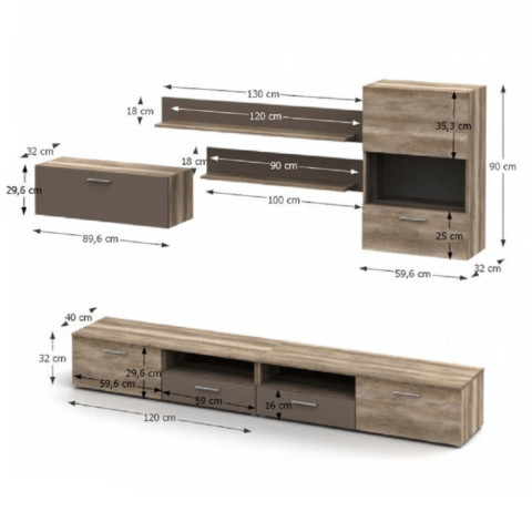 Este format din două comode TV, două dulapuri suspendate şi două poliţe.