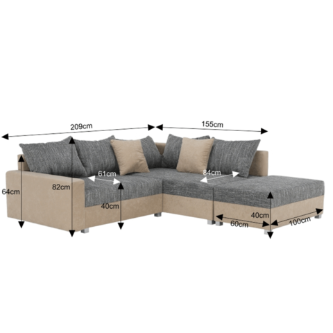 Dimensiuni colţar (lxhxA): 212×64/82×160 cm