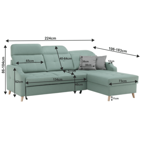 Dimensiuni (LxGxÎ): 224×106 / 183×86 / 104 cm