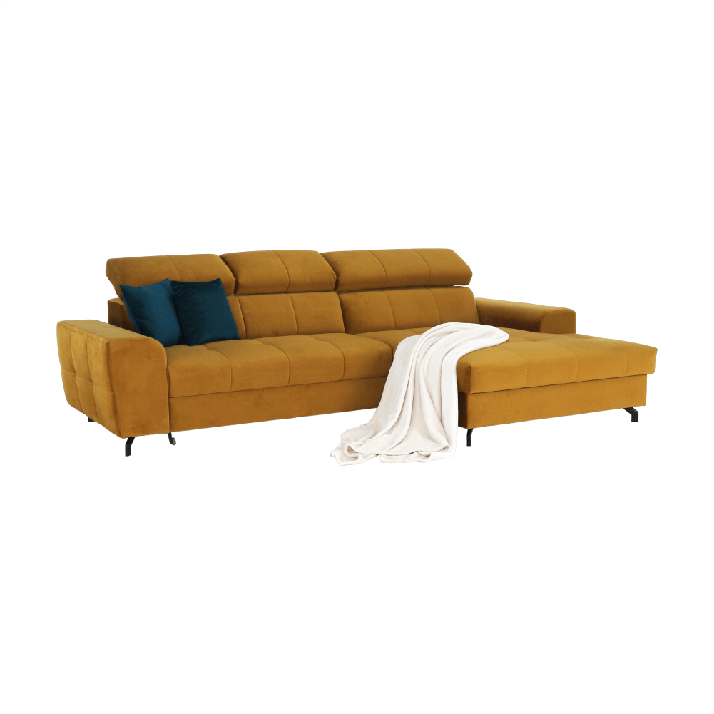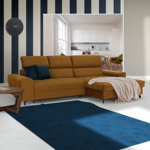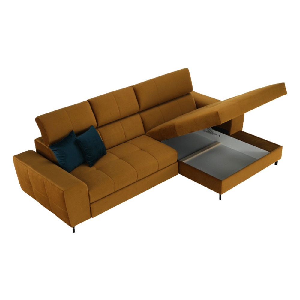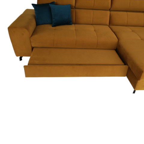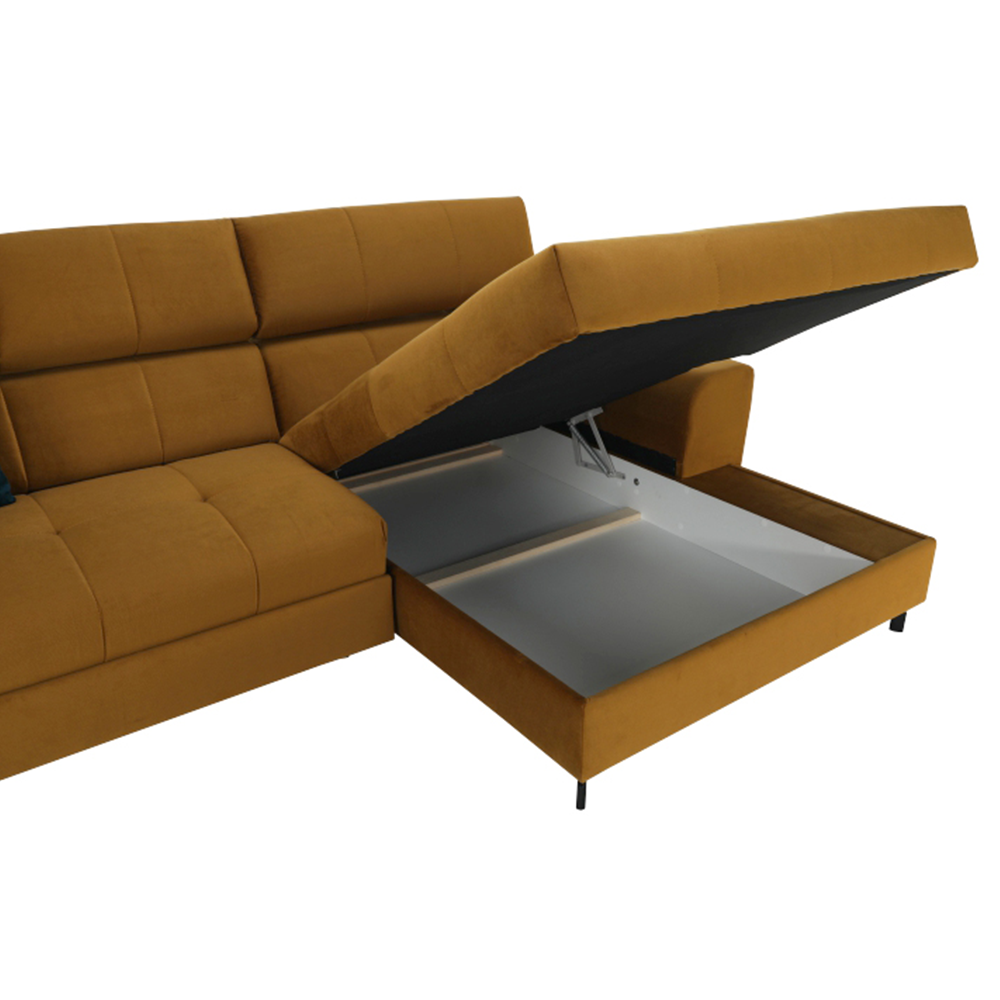 Colţar tapiţat cu colţ extensibil cu spaţiu de depozitare GINIO
