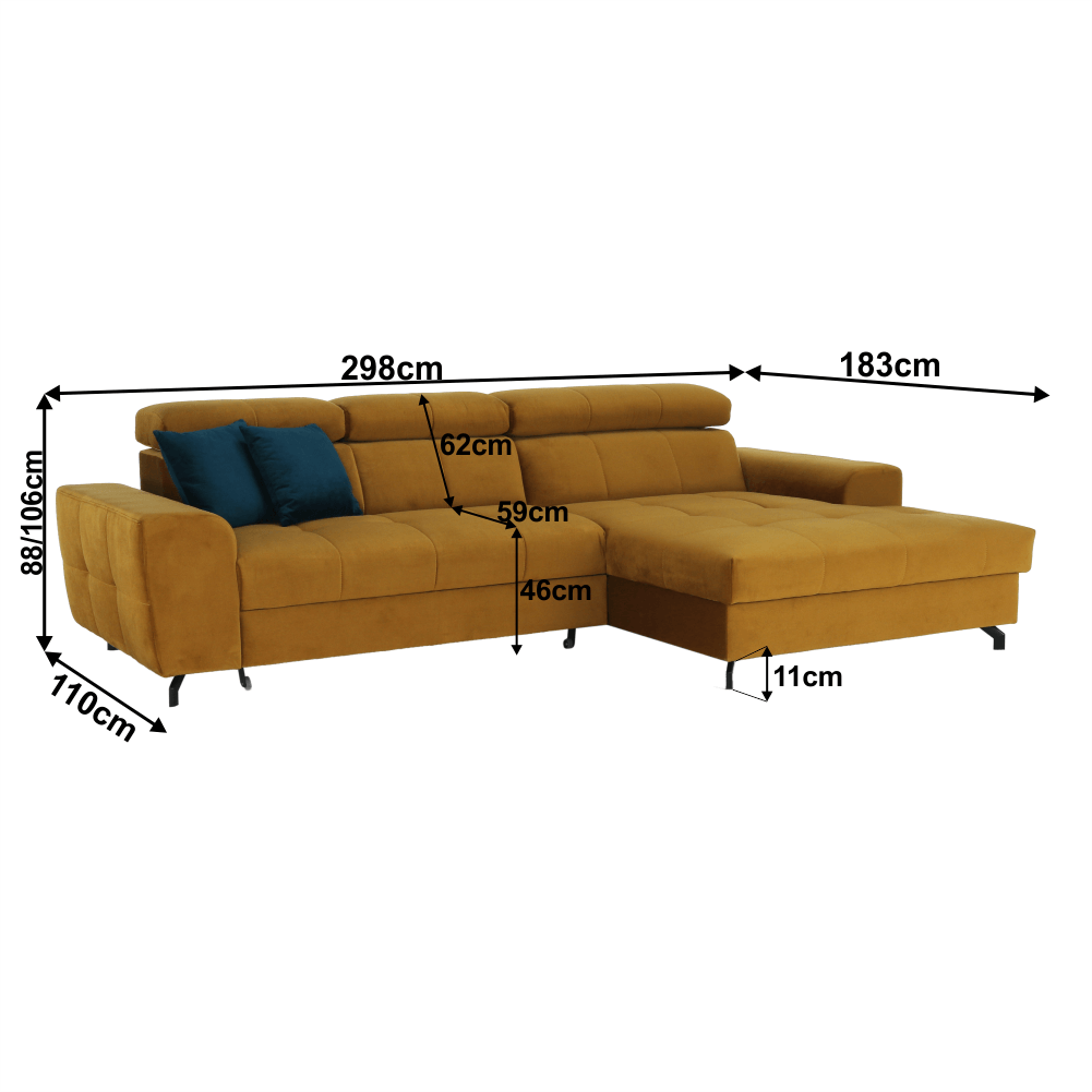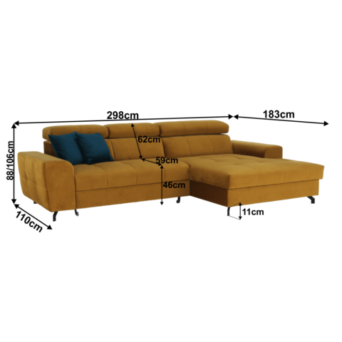 Dimensiuni (LxGxÎ): 298×110 / 183×88 / 106 cm
