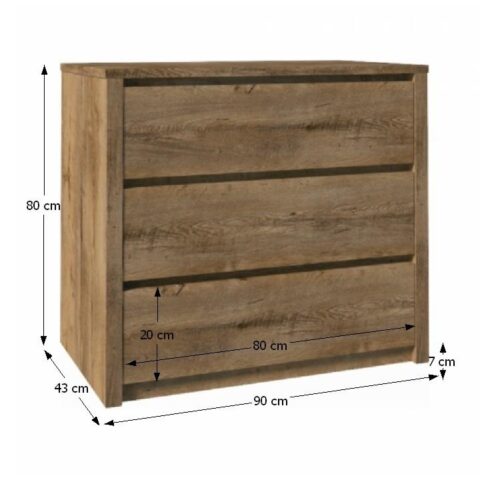 Comodă cu trei sertare, stejar lefkas închis, MONTANA K3S