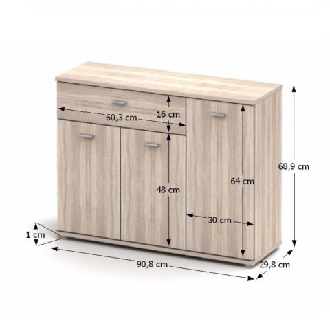 Culoare stejar sonoma, fag sau alb, material: PAL melaminat, dimensiuni scrise în cm (LxAxH)