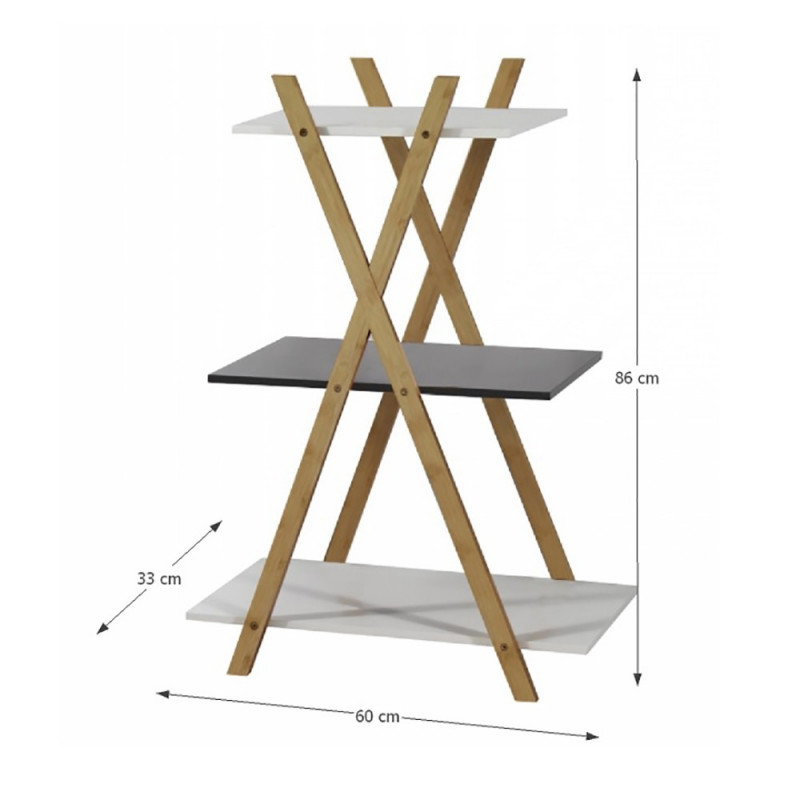 Material: MDF/bambus Culoare: gri/alb/bambus Dimensiuni LxHxA: 60x86x33 cm Livrare: Demontat Garantie: 2 ani Produsul se livreaza demontat, la colet (kit ambalat in cutii de carton).