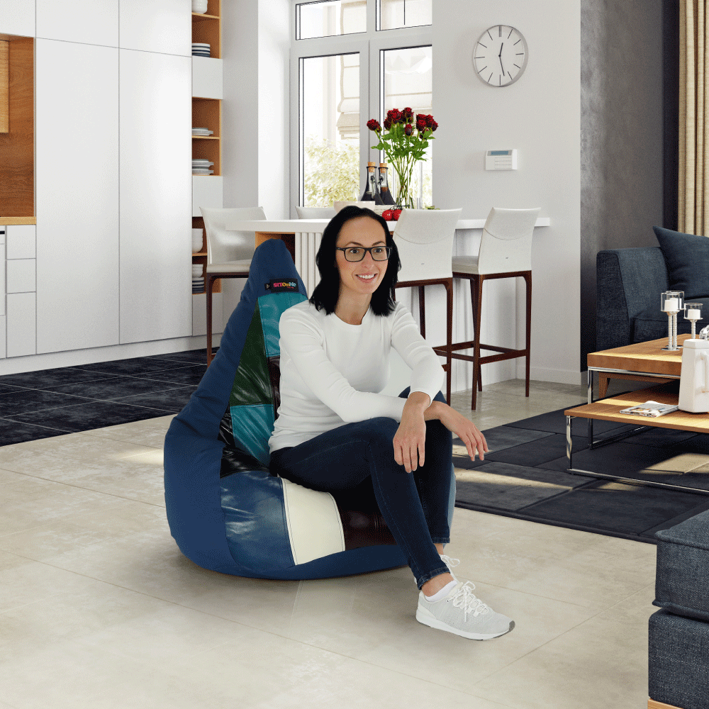 Fotoliu tip sac, albastru înch...