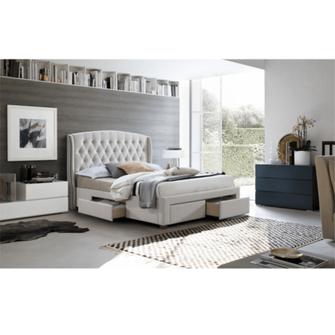 Pat AKANA cu tăblie matlasată şi somieră textilă,