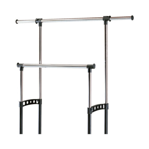 Suport dublu pentru umerase si raft pentru pantofi. Din otel cromat si plastic. Stender dublu reglabil in inaltime si latime.